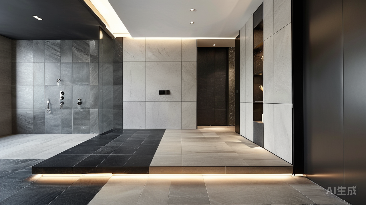 这正是极简的深意:在克制中蕴藏无限。单色系深浅瓷砖的铺陈,看似是色彩的贫瘠,实则是空间层次的富矿。它于统一中铺展韵律,在静默处勾勒力量。当深浅的砖石在脚下延展、在墙面起伏,空间便拥有了被触摸的深度。极简,由此不再空洞,而成为生活自身从容呼吸的留白诗篇——在单一色彩的分寸里,空间获得了最丰盈的秩序与张力。
