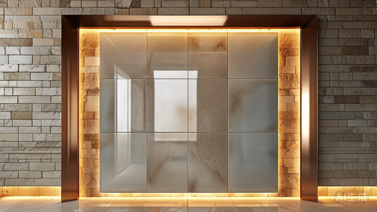 含蓄的金属微光,是点亮轻奢空间的灵魂密钥。 它们绝非刺目的金光银箔,而是以铂金灰、香槟金或古铜棕等克制色调,将微小的金属粒子或箔片融入瓷砖釉面或坯体。这微光只在光线流转时低语,于不经意处泛起星芒般的涟漪,赋予空间深邃的光影变幻。一片米白或暖灰的瓷砖基底上,细密的铂金微粒静静铺陈,墙面或地面便拥有了呼吸般的灵动。浅灰底色中那若隐若现的香槟金脉络,犹如晨曦穿透薄雾,既不过分张扬,又精准地锚定了空间的优雅基调。金属的锋芒被解构为细腻的粒子,只在光影眷顾时低吟浅唱,让每一次目光的流转都成为与空间光影的私密对话。