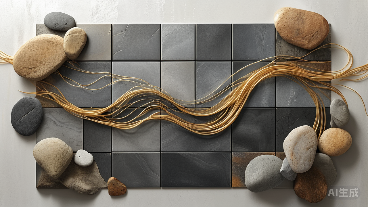 驾驭这两者,需深谙“克制”与“呼应”之道。 金属光泽是点缀而非主角,选择与瓷砖底色协调的金属色调——浅色砖配铂金、暖灰配香槟金、深色则用古铜,避免色彩冲突带来的廉价感。脉络的分布同样需要呼吸感,纹理过密则显压迫,过于稀疏则显单调。光线是它们的魔术师——自然光下,脉络的立体感与金属的闪烁被放大;柔和灯光下,则更显温润内敛。大空间可容更张扬的纹理或闪粉,小空间则宜选择细密含蓄的表达。