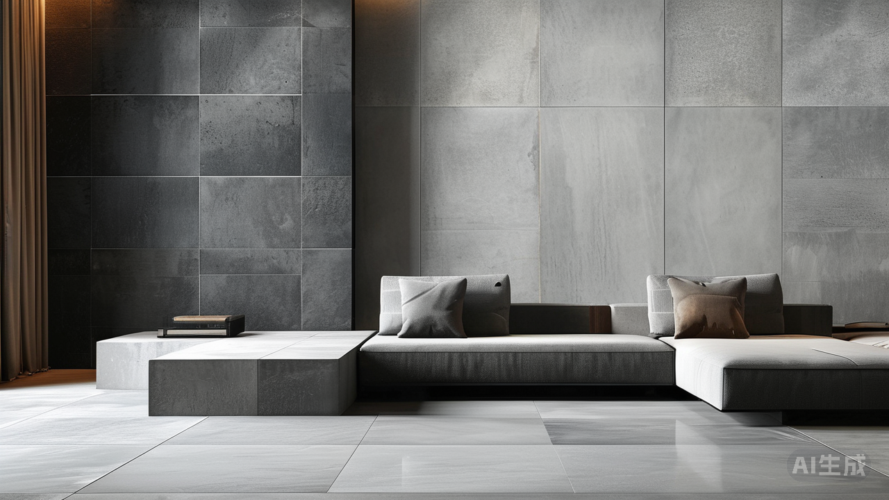 肌理是高级灰的第二张面孔。极简风摒弃繁复装饰,质感便成为视觉与触感的焦点。光滑如镜的亮面灰,反射光线,扩大空间感,营造出冷静的未来气息;哑光面则如天鹅绒般内敛,吸收多余的光,让空间瞬间静谧下来;而仿天然岩石的凹凸肌理,或手工抹痕的细微起伏,则为极简空间注入了原始的生命力与时间感。脚底传来的微凉或温润,指尖划过时的顺滑或粗砺,都是高级灰在无声地与你对话,讲述着关于材质、工艺与自然的故事。