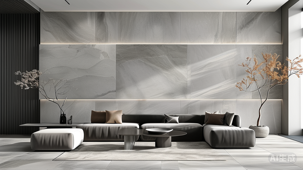 一体化的美学:微水泥与岩板瓷砖如何成就无缝极简空间