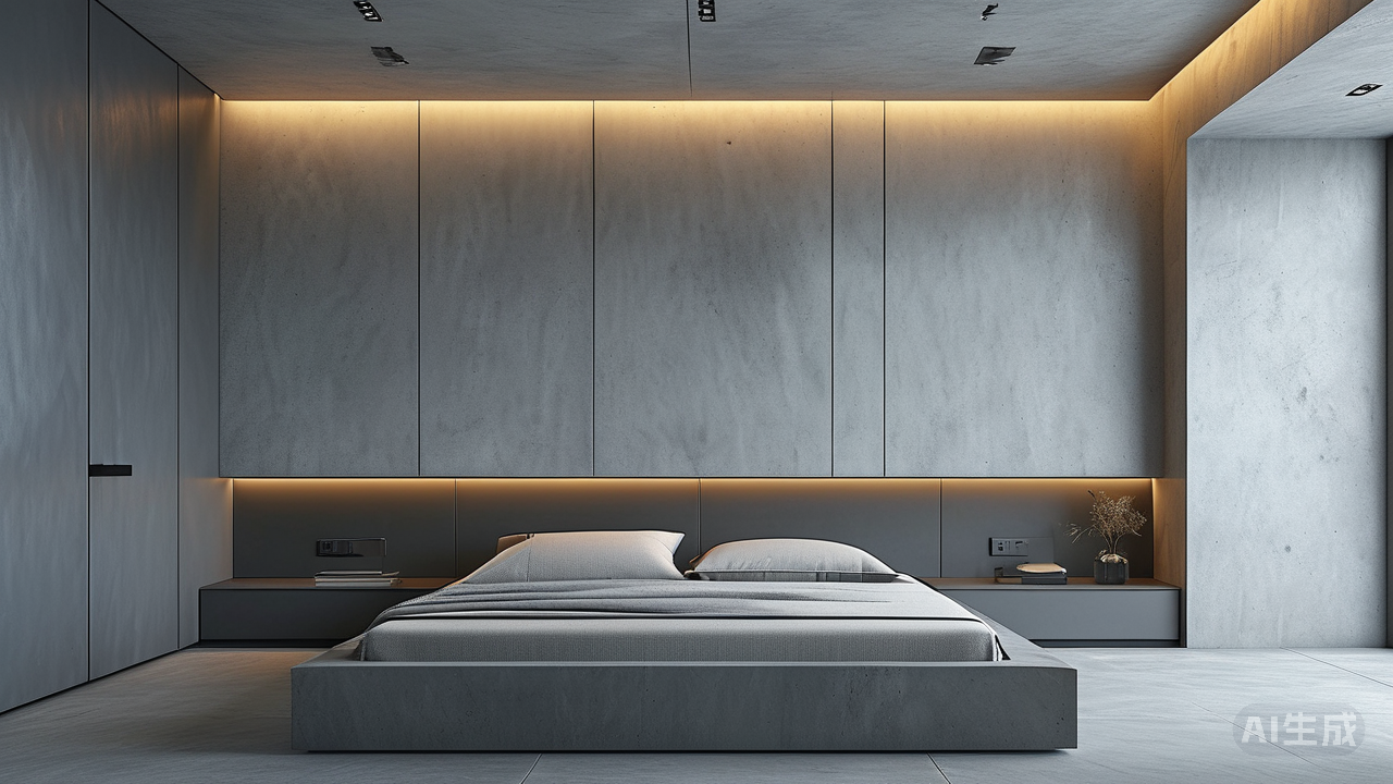 真正的融合,发生在边界消隐的时刻。当微水泥从地面流畅地攀上墙面,甚至漫延至天花板,而岩板瓷砖则以整面墙或大型家具的形式嵌入其中,它们之间不再有踢脚线、收边条这类“标点符号”的打断。空间被还原为一个完整的立方体,视觉上的连续性得以最大化。人在其中活动,视线不受阻碍,身体感知到的是被统一材质拥抱的安定。这种“无缝”不仅是工艺的精进,更是一种美学主张:它拒绝琐碎,追求内在的秩序与整体性。